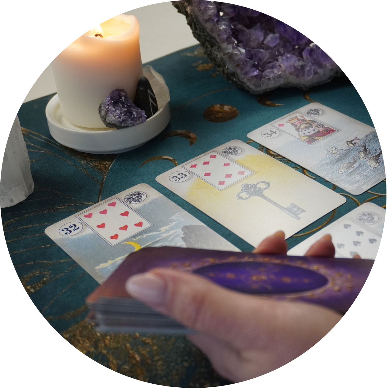 Eine Kartenlegung mit den Lenormandkarten eröffnet dir einen klaren Blick auf das, was in dir wirkt. Sie zeigt Zusammenhänge, macht Entwicklungen sichtbar und bringt Themen an die Oberfläche, die gesehen werden wollen. Die Betrachtung deiner aktuellen, vergangenen und sich entwickelnden Lebensprozesse kann dich dabei unterstützen, wieder bewusster in deine eigene Verantwortung zu gehen und Entscheidungen aus dir selbst heraus zu treffen.