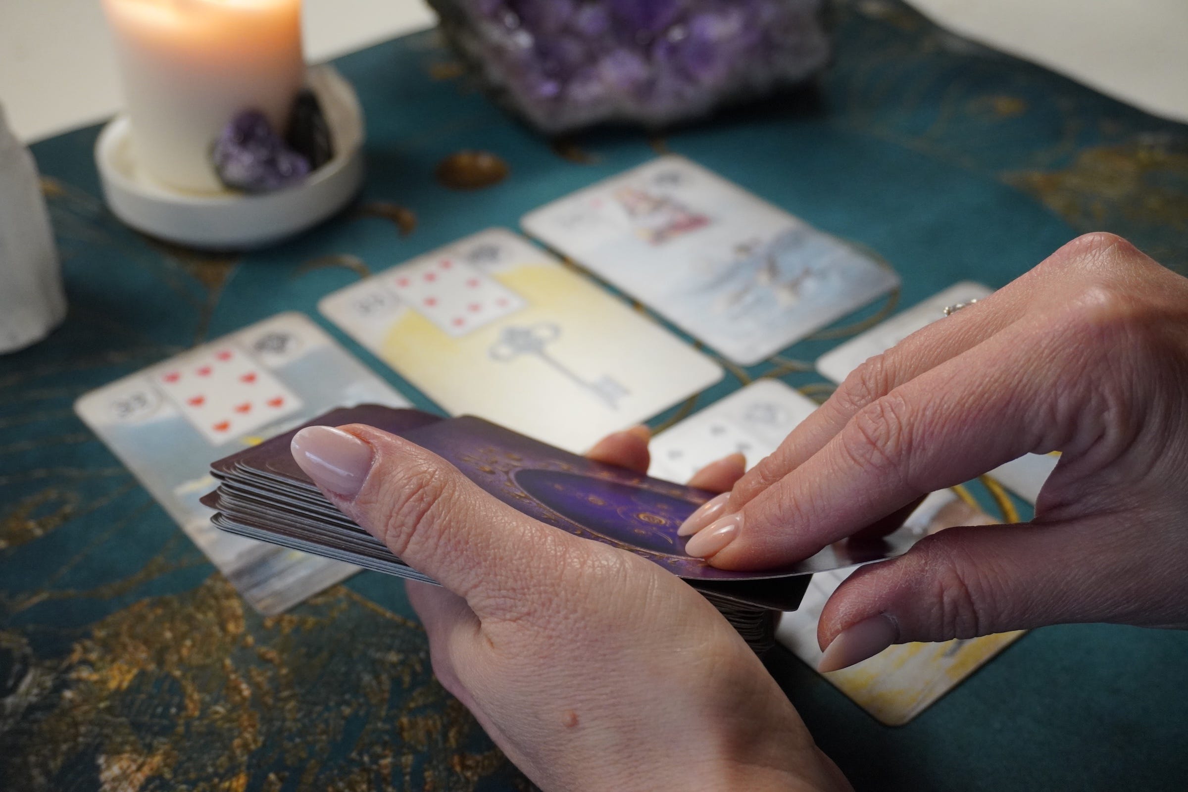 Das Kartenlegen mit den Lenormandkarten ist kein Blick in eine festgeschriebene Zukunft - sondern ein Spiegel für das, was gerade in dir und um dich herum wirkt. Klar, ehrlich und tief verbunden.